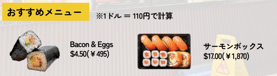 日本風だけど実はローカルブランドの巻き寿司専門店。フードコートの定番で、お寿司セットも人気。おにぎり感覚で手軽に楽しめ、非常に人気。