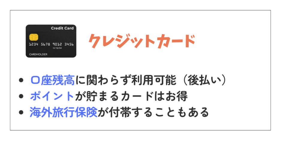 高い安全性と補償: 現金を持ち歩く必要がなく、紛失・盗難時の補償がデビットカードよりも手厚いことが多いです。