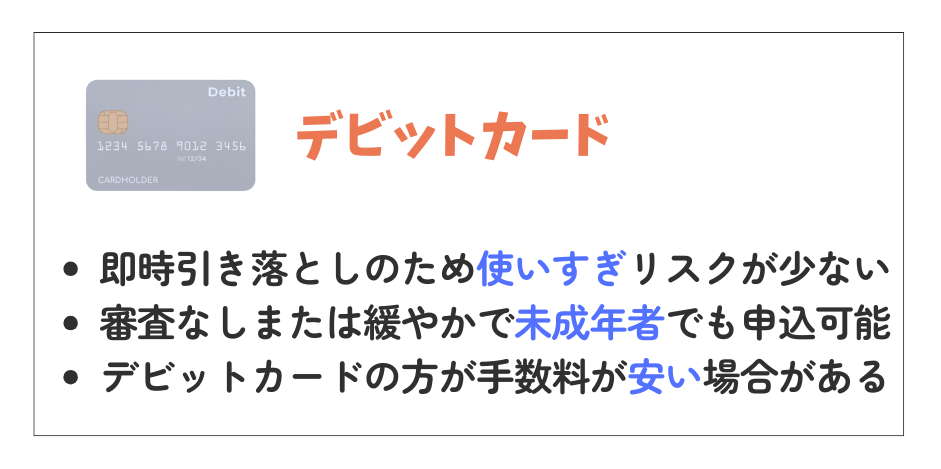 | 項目 | クレジットカード | デビットカード |